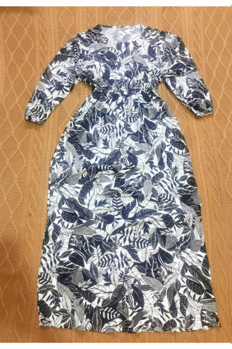 پیراهن ساحلی نخی بلند در دو طرح زیبا سر آستین و کمر کش دار