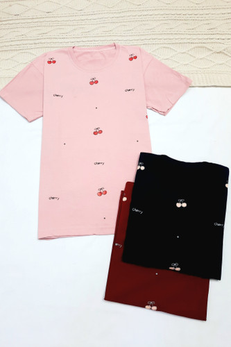 تیشرت گلدوزی نخ پنبه سوپر زنانه طرح تدی