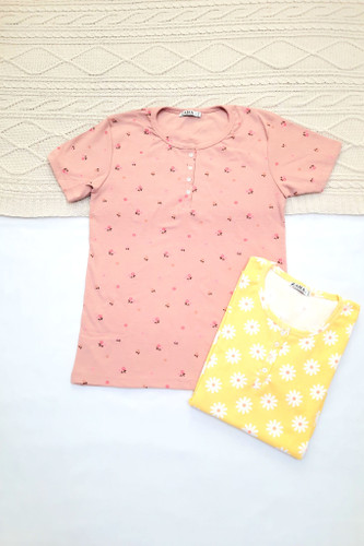 سه تیکه طرح کاکتوس (تیشرت،شلوارک و تاپ) جنس اسپان دارای کشسانی فری سایز